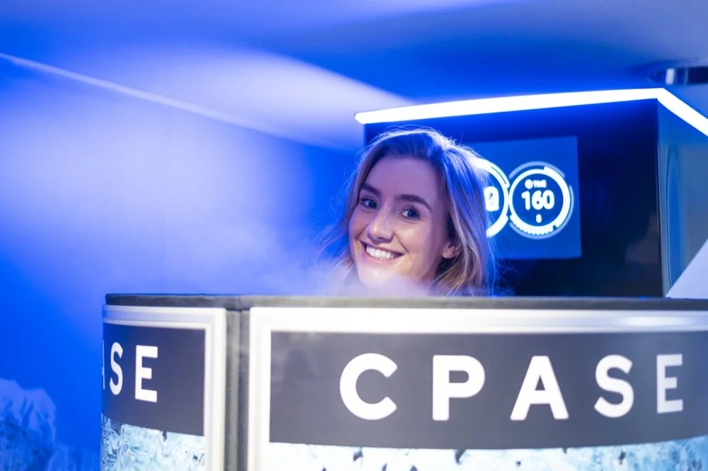Moving on to spending some time with Luca the Health & Wellbeing Expert at CPASE who introduced us to Cryoconditioning. This involves stepping into a chamber filled with nitrogen vapour with only your head exposed. The session lasts for 3 minutes at temperatures of around -140 degrees Celsius which is so much harder than it sounds!