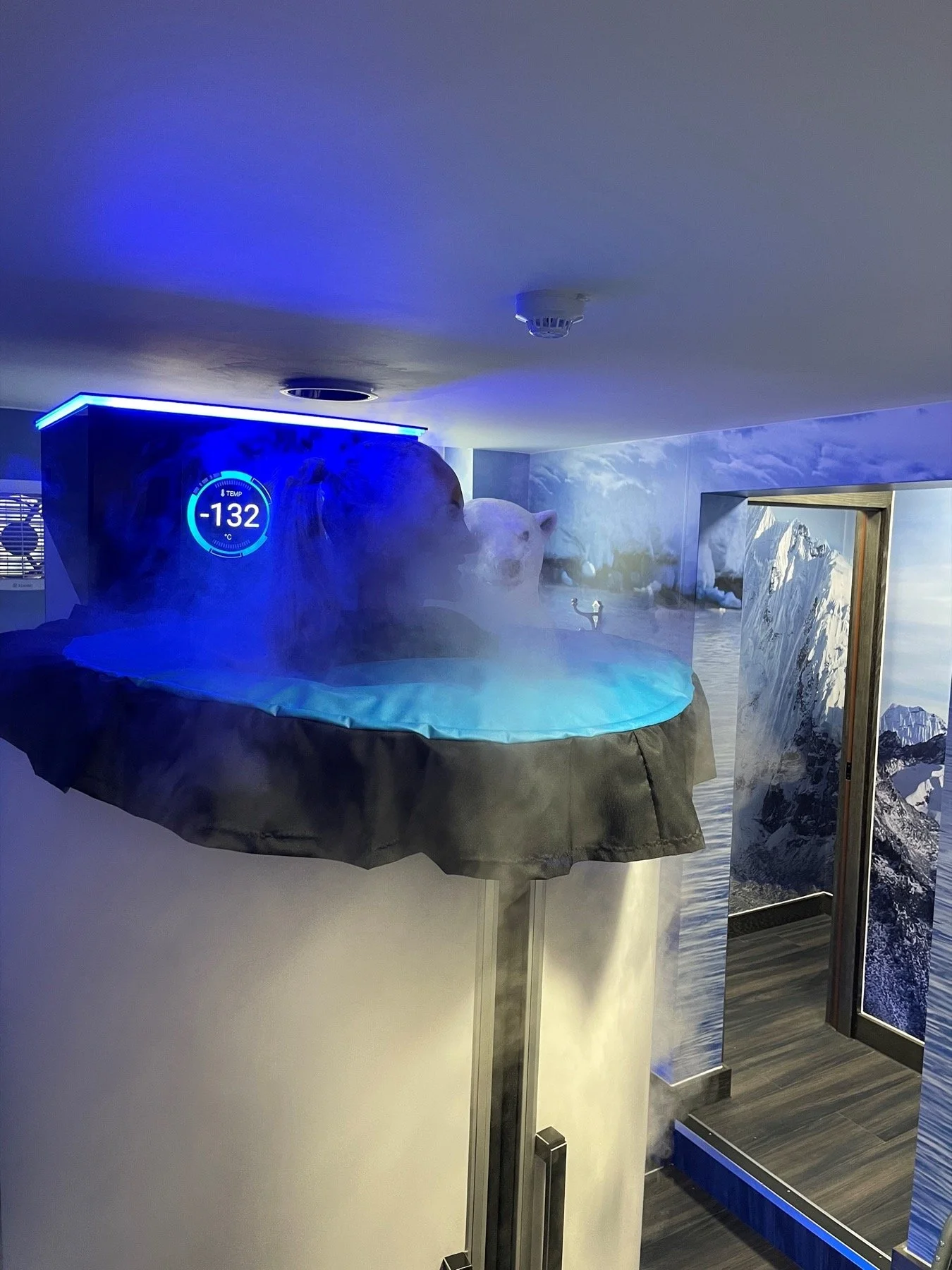 Another form of cold therapy I use regularly is taking a dip in the Brass Monkey Ice Bath at CPASE. I submerge my whole body until I feel the water at the nape of my neck. I try to use the ice bath up to 10 times a month, varying between 90 to 180 seconds with the temperature at a very cold 0 degrees! Regular exposure to cold temperatures like Cryo and Ice Baths strengthens the body’s resilience to the stresses in everyday life.