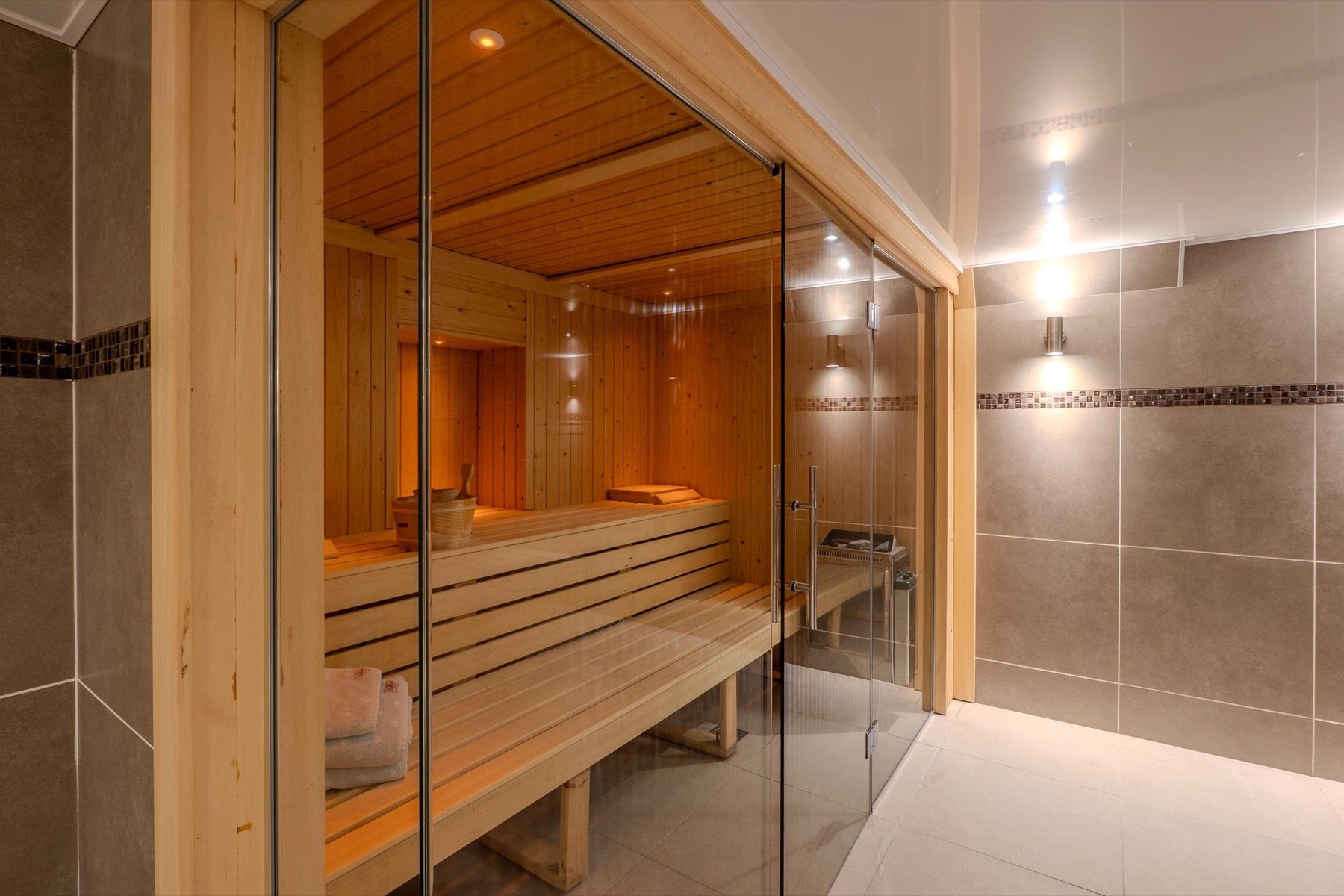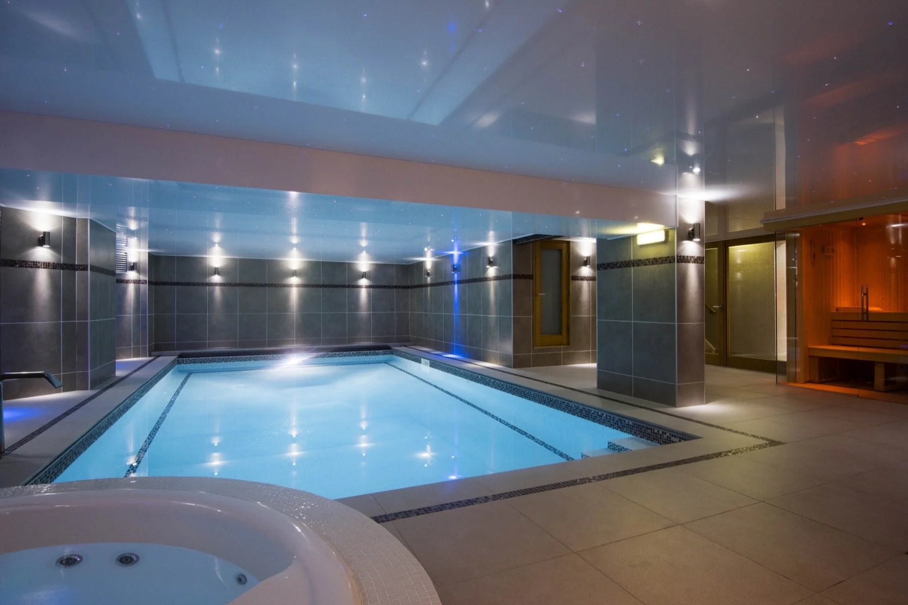 The leisure suite is a tranquil space with a swimming pool, jacuzzi, gym and sauna.