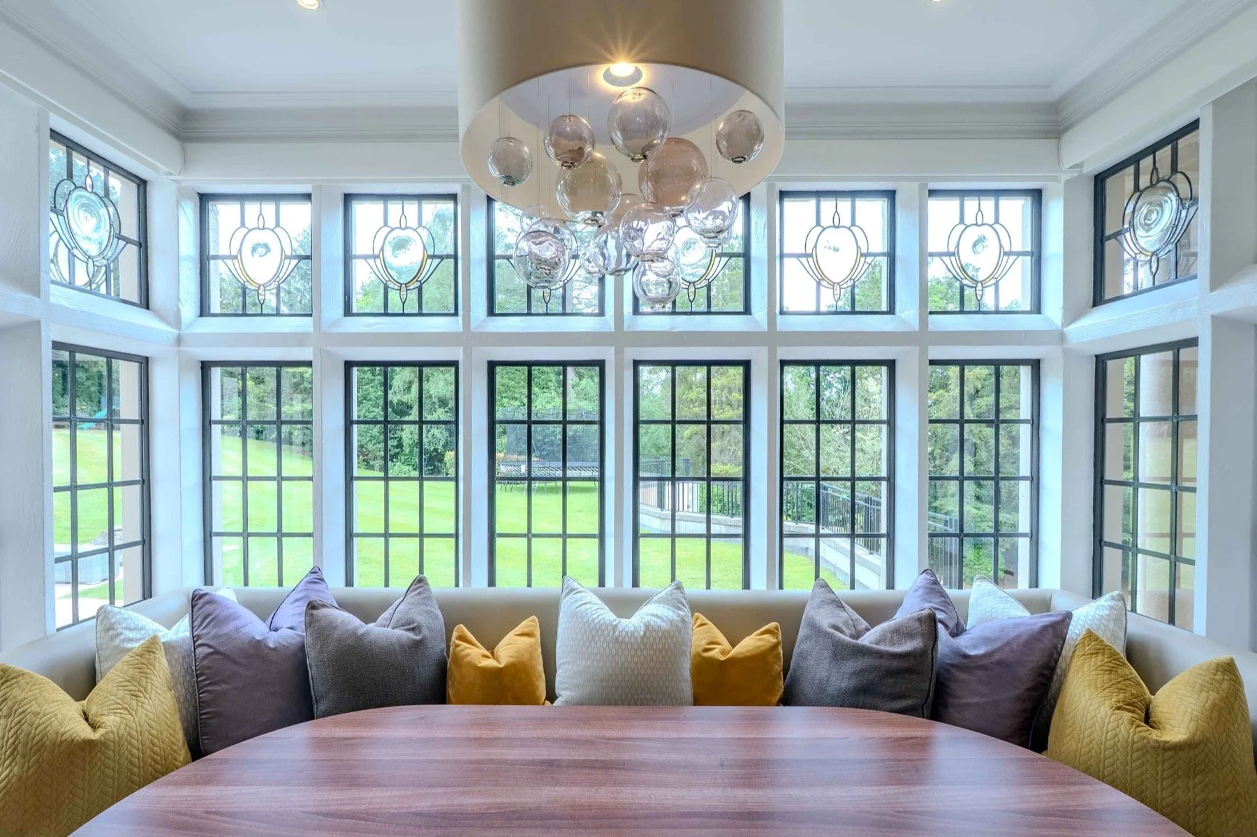 Surrounded by mature trees for complete privacy, the grounds include an expansive lawn, a south-facing stone terrace accessed from the kitchen, dining room and games room.