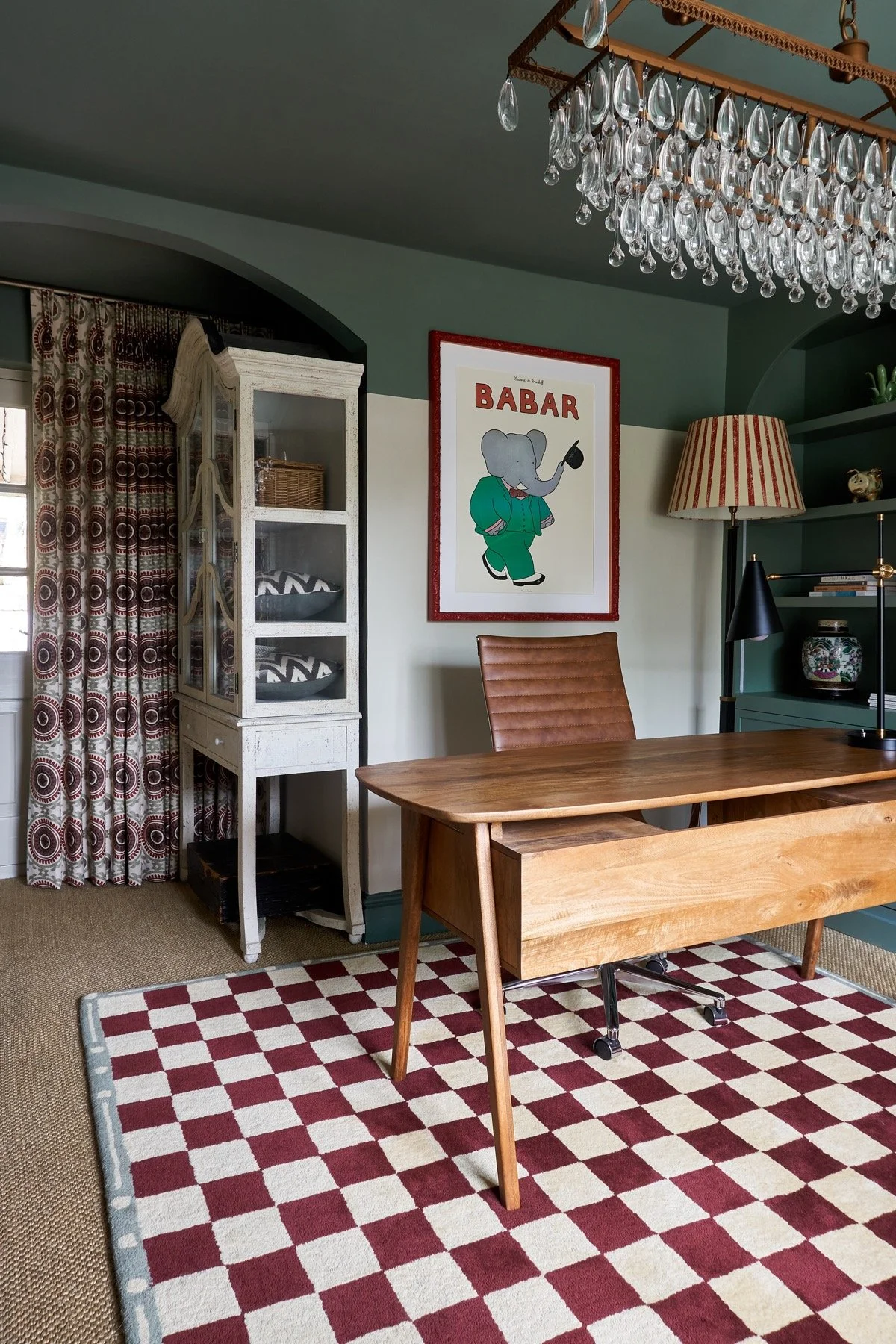 In the Tarvin Treat study, we painted the ceiling in Farrow & Ball’s Green Smoke and took the colour a third of the way down the walls. It instantly added interest and made the room feel more considered, without feeling too dramatic.